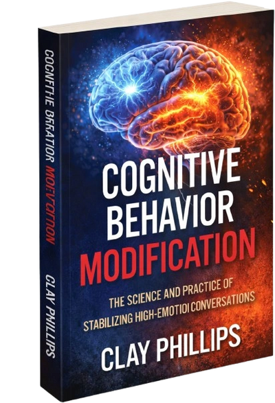 In this book, Cognitive Behavior Modification refers to a practical, real-time communication methodology for stabilizing high-emotion conversations so participants can move from emotional reactivity toward calmer, more cognitively engaged decision-making. The term is not used here to describe psychotherapy, long-term clinical treatment, or therapeutic behavior change. Rather, it describes the structured use of communication in the present moment to reduce threat, restore emotional steadiness, and create the conditions necessary for clear thinking, sound judgment, and practical forward movement.